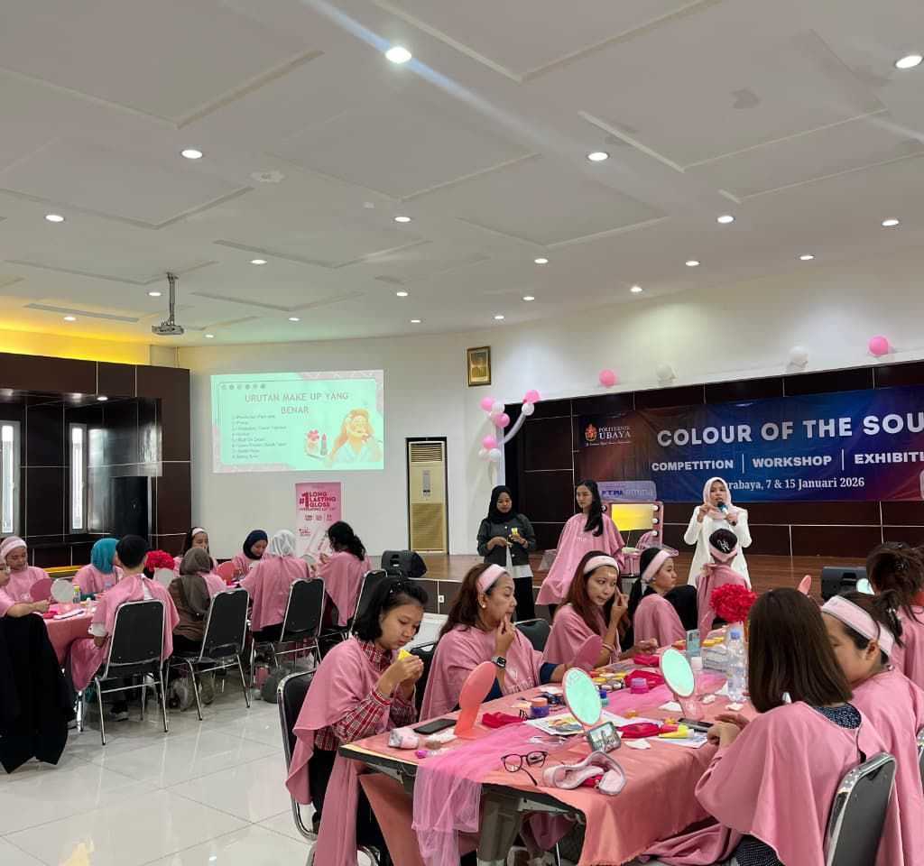 Rabu 7 Januari bertempat di Integrity Room Politeknik UBAYA telah terselenggara sesi Workshop yang dikemas dalam beauty class yang bekerja sama dengan brand Emina, yang dihadiri sekitar 20 peserta baik dari dalam maupun luar Politeknik UBAYA. Slamet Wahyudi, S. E., M. IB. selaku Wakil Direktur Politeknik UBAYA juga memberikan sambutan pada pembukaan sesi acara tersebut.